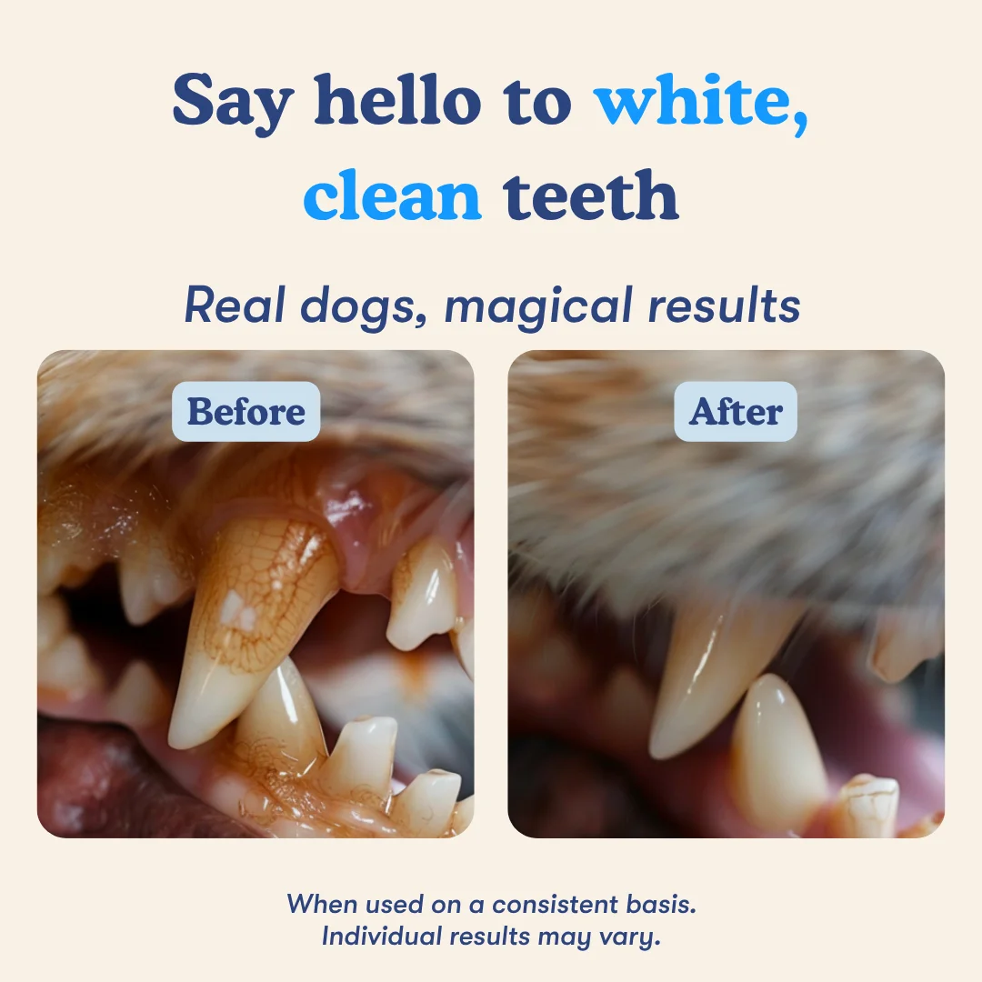 Suppdog’s Dental Formula+ strengthens and whitens teeth. It removes plaque and bacteria. And it’s scientifically proven!
