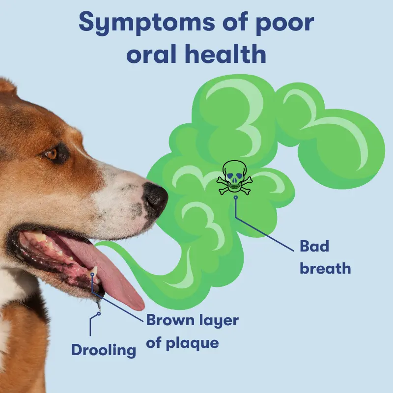 Bad breath is an early sign that your dog’s mouth is overrun with harmful bacteria.