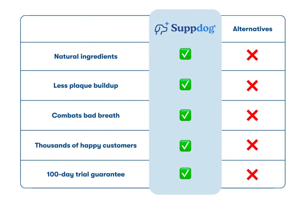 With Suppdog’s Dental Formula+, you can easily fight the bacteria in your dog’s mouth.
